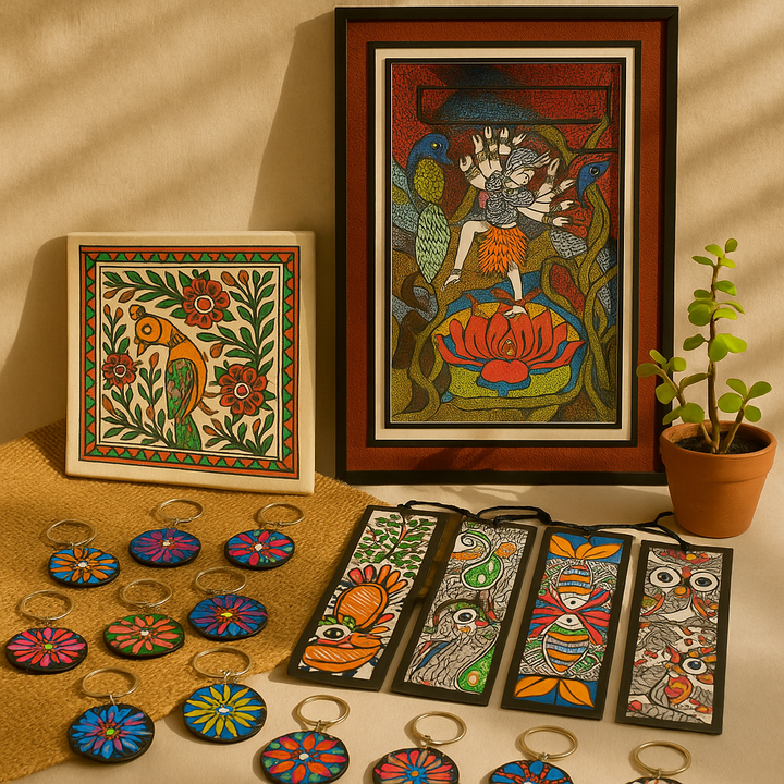 Rooted in the timeless tradition of Madhubani & Mithila art, our work blends folk motifs and earthy palettes to create pieces that feel meaningful — not just decorative.