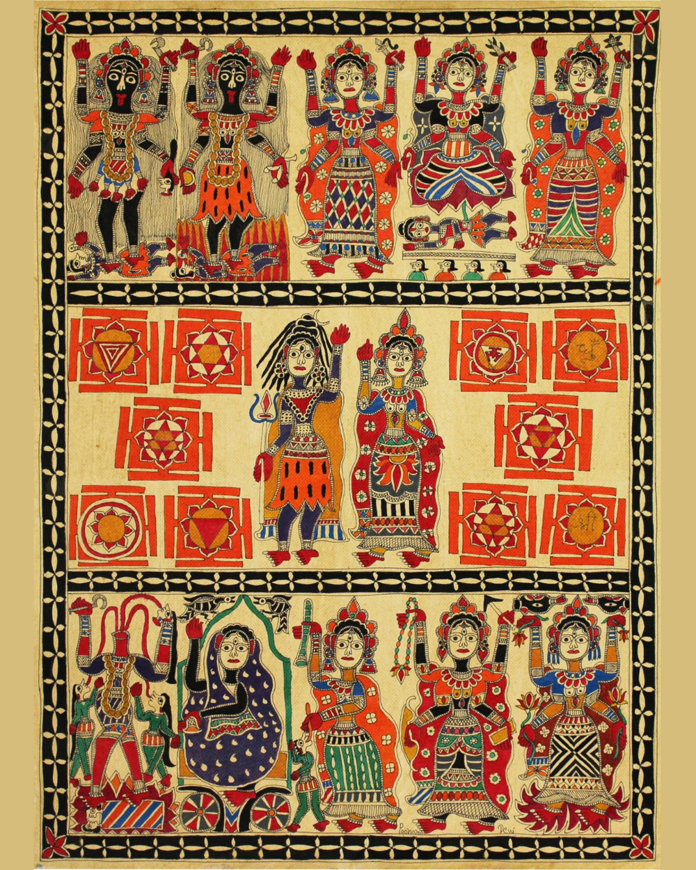 Vibrant depictions of gods & goddesses – rich, full backgrounds. A Brahmin women's legacy.
